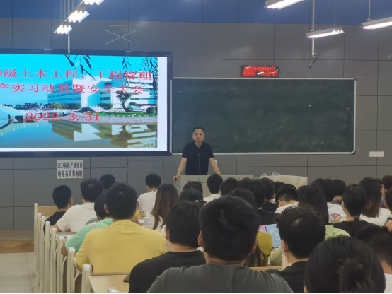 2022年3月31日下午13:50,bevictor伟德官网在二教楼2-1教室召开2019级土木工程、工程管理专业生产实习动员大会。bevictor伟德官网经理孙金坤、副经理郭飞飞、实验室主任杨曙光、实验管理员姚其斌以及231位实习员工参加了动员大会。
