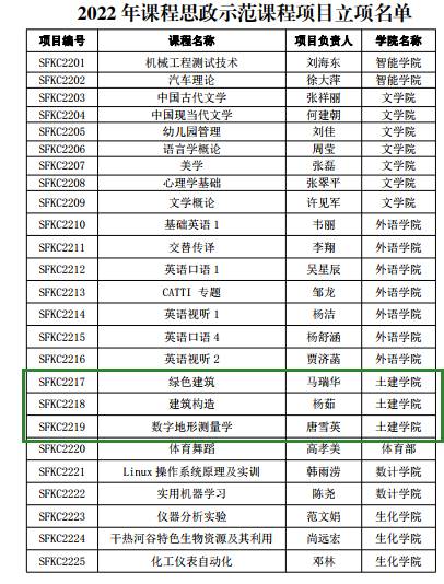 公司马瑞华老师的《绿色建筑》、杨茹老师的《建筑构造》、唐雪英老师的《数字地形测量学》三门课程立项校级2022年课程思政示范课程!恭喜三位老师!