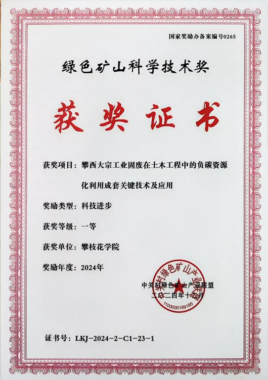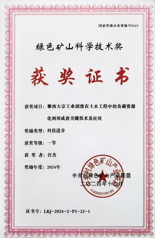 1月10日-12日,第二届中国绿色矿山国际年会暨2024年度绿色矿山科学技术奖颁奖大会在北京召开。由bevictor伟德官网汪杰博士牵头,伟德BETVLCTOR1946为第一完成单位,与四川轻化工大学、攀枝花市润泽建材有限公司联合完成的《攀西大宗工业固废在土木工程中的负碳资源化利用成套关键技术及应用》荣获绿色矿山科技进步一等奖,由汪杰博士团队牵头以伟德BETVLCTOR1946为第一单位完成的项目还获得了2024年度绿色共享与循环利用贡献奖二等奖,汪杰博士被评为2024年度绿色矿山优秀科技工作者。这是学校持续推动有组织科研获得的重要成果,也是学校重视本土人才持续培养取得的显著成效。